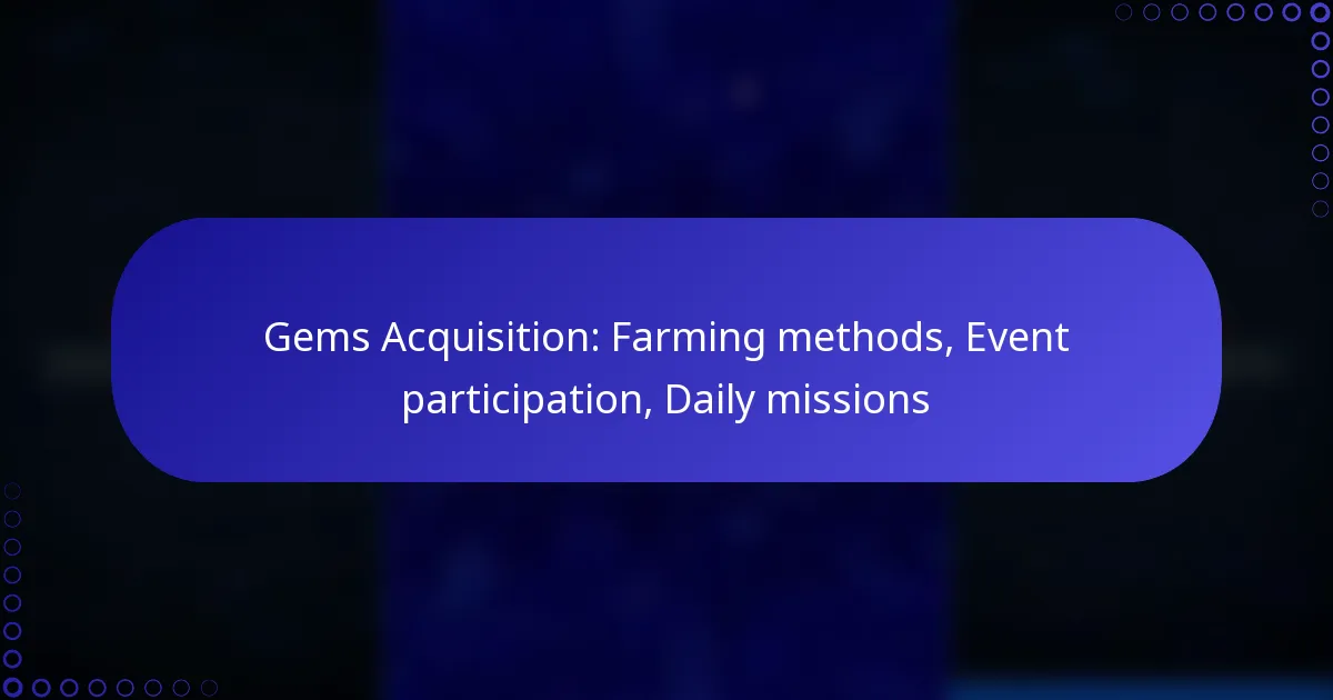 Acquiring gems in your game can be optimised through effective farming methods, event participation, and daily missions. By identifying high-yield locations and utilising specific characters, players can enhance their gem collection. Additionally, engaging in limited-time events offers unique rewards, while daily missions provide consistent opportunities to earn gems for in-game purchases.